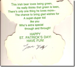 In honor of St. Patrick’s Day and the Irish in me, I thought I’d share a St. Patty’s Day card.